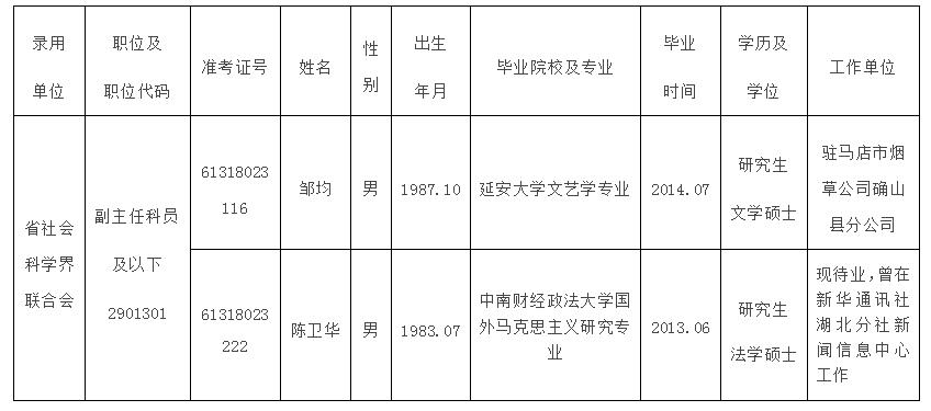 河南省社会科学界联合会2016年统一考试录用公务员拟录用人员公示