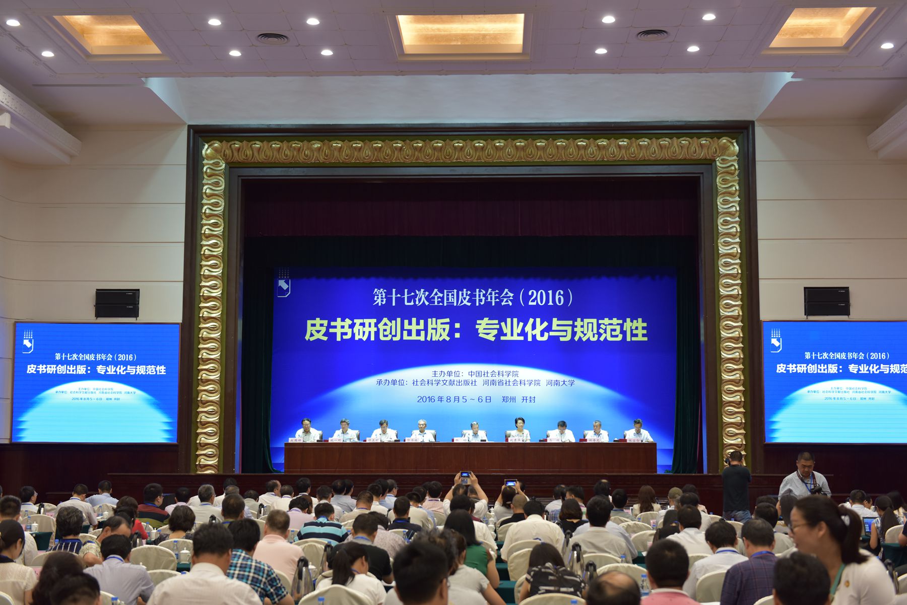 由中国社会科学院主办,社会科学文献出版社与河南省社科院、河南大学共同承办的第十七次全国皮书年会于8月5日在河南郑州举行,本次年会主题为“皮书研创出版:专业化与规范性”。来自中国社会科学院、地方社科院以及高校、政府研究机构等近400名专家学者汇聚一堂,围绕皮书成果形式的规范性、皮书研究程序的规范性、皮书研创人员的专业化、皮书成果发布的专业化、皮书研创平台建设的专业化等议题展开研讨。